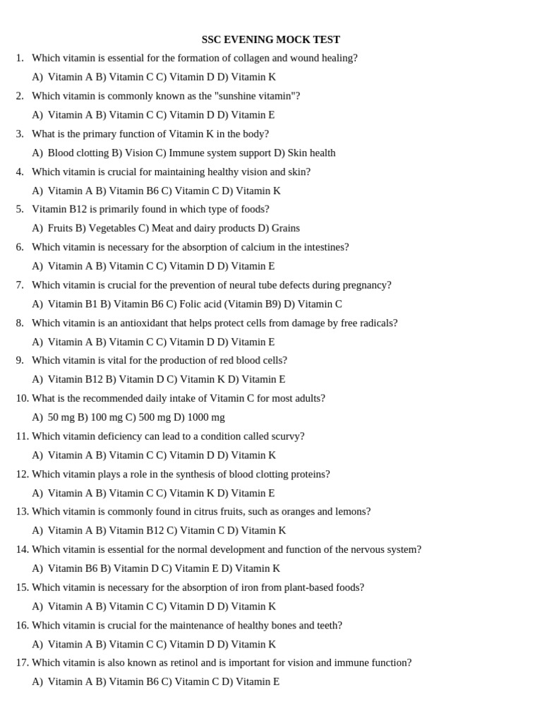 1. Which vitamin is essential for the formation of collagen and wound healing?