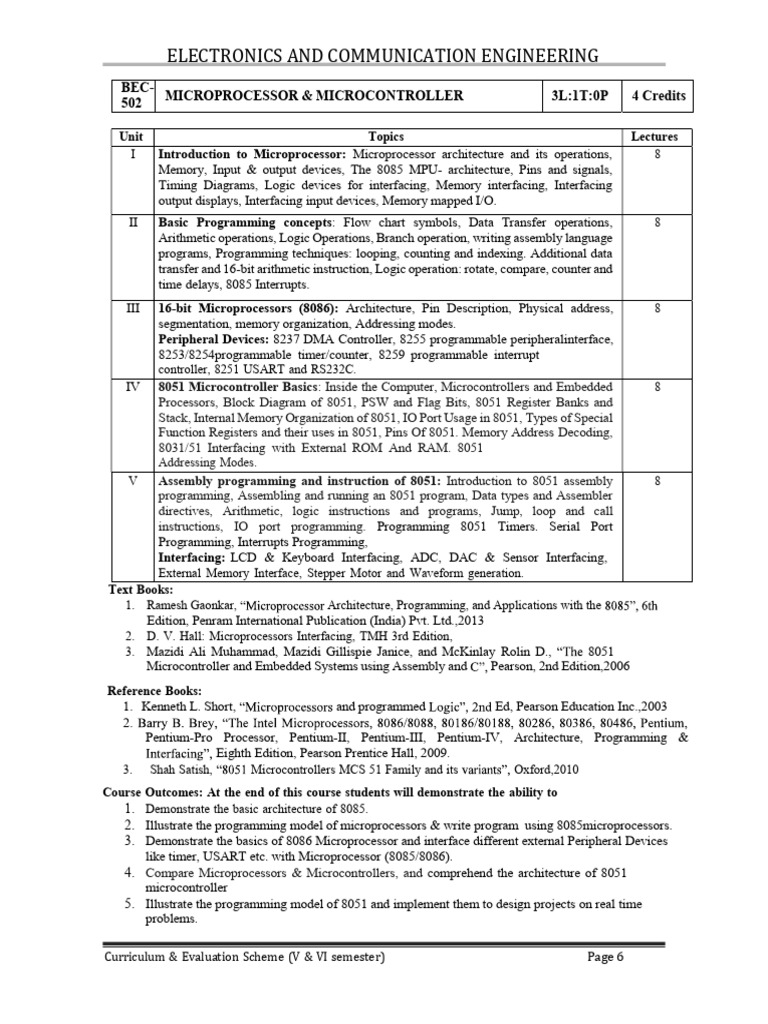 MICROPROCESSOR & MICROCONTROLLER 3L:1T:0P 4 Credits