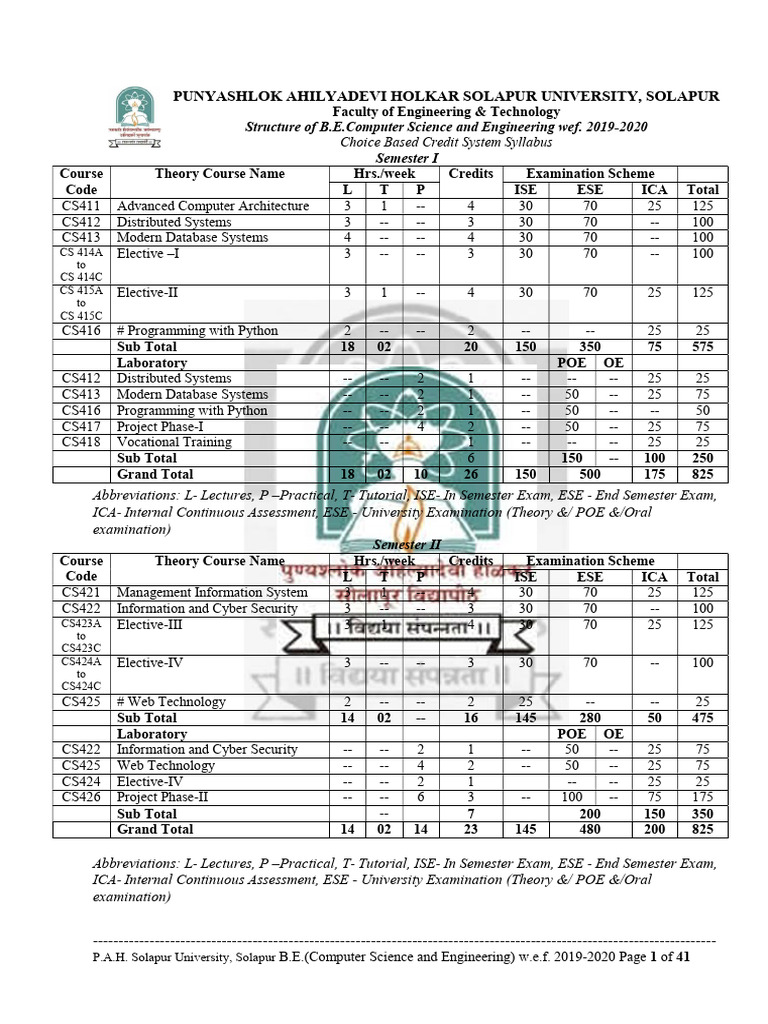P.A.H. Solapur University, Solapur B.E.(Computer Science and Engineering) w.e.f. 2019-2020 Page 4 of 41