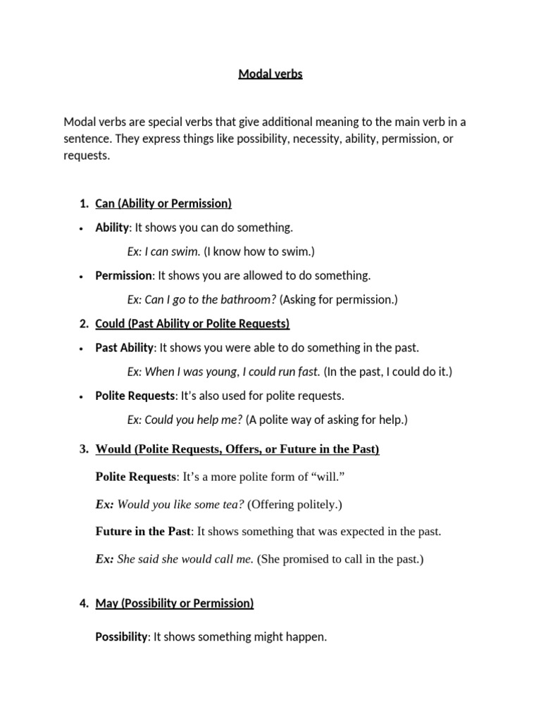 Fill in the blanks with the correct modal verb (can, could, may, might, must, have