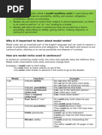 Modal verbs are special verbs that give additional meaning to the main verb in a
