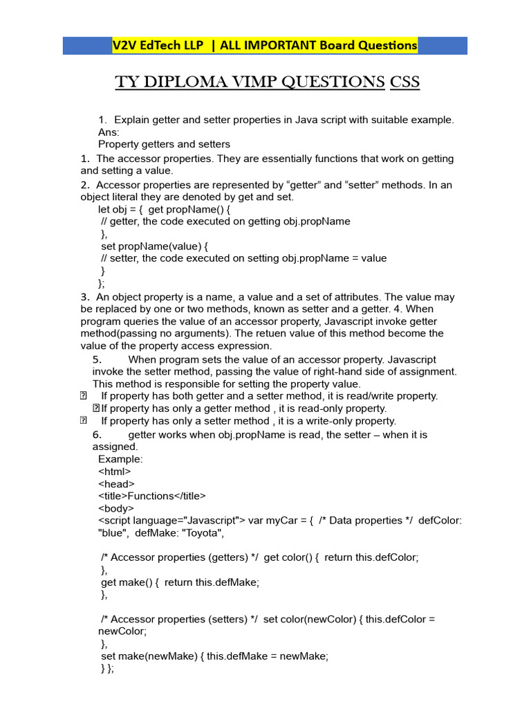 2. Accessor properties are represented by “getter” and “setter” methods. In an
