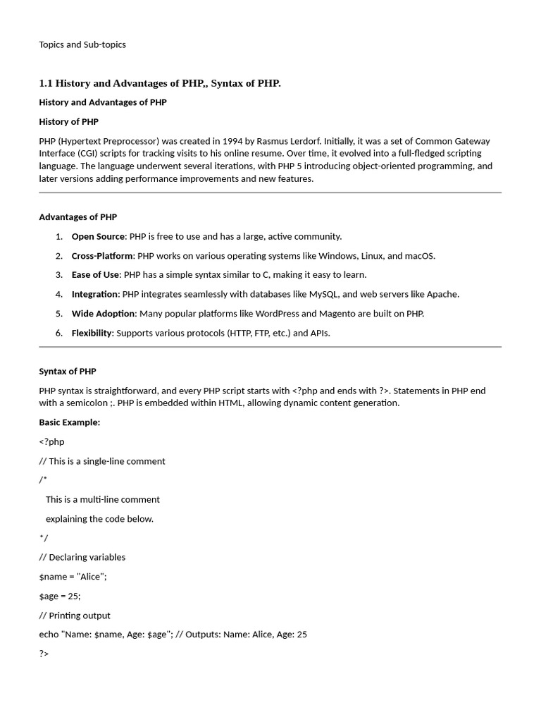 with a semicolon ;. PHP is embedded within HTML, allowing dynamic content generation.