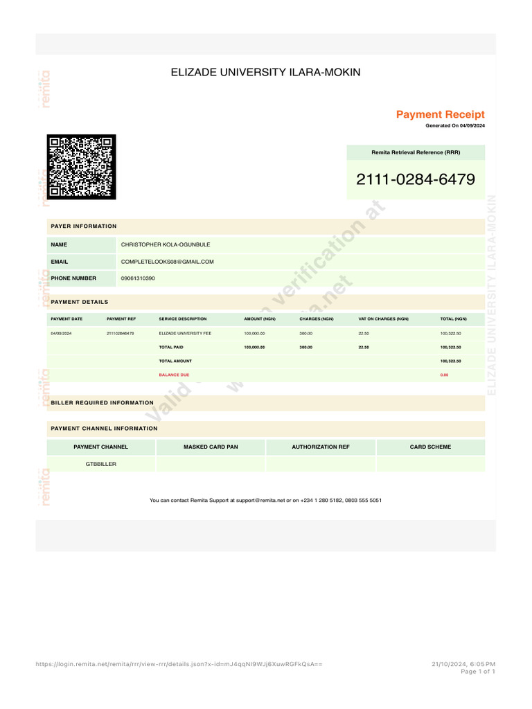 04/09/2024 211102846479 ELIZADE UNIVERSITY FEE 100,000.00 300.00 22.50 100,322.50