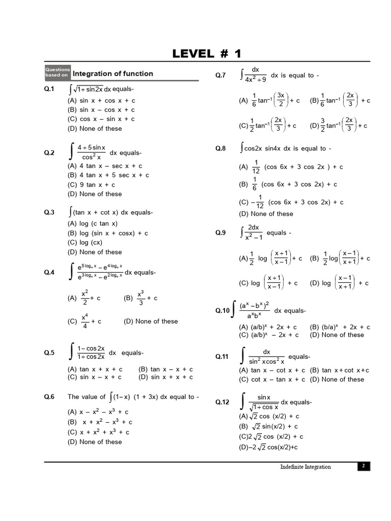 Indefinite Integration Practice Questions