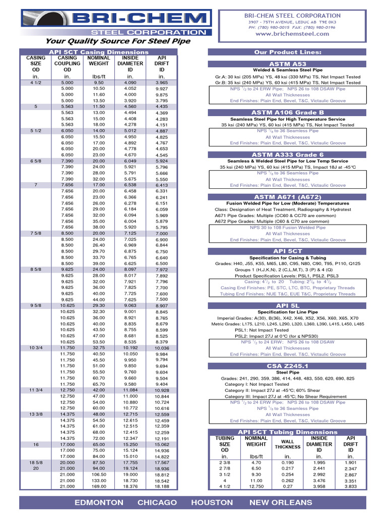 10.625 36.00 8.921 8.765 Imperial Grades: A(30), B(36), X42, X46, X52, X56, X60, X65, X70