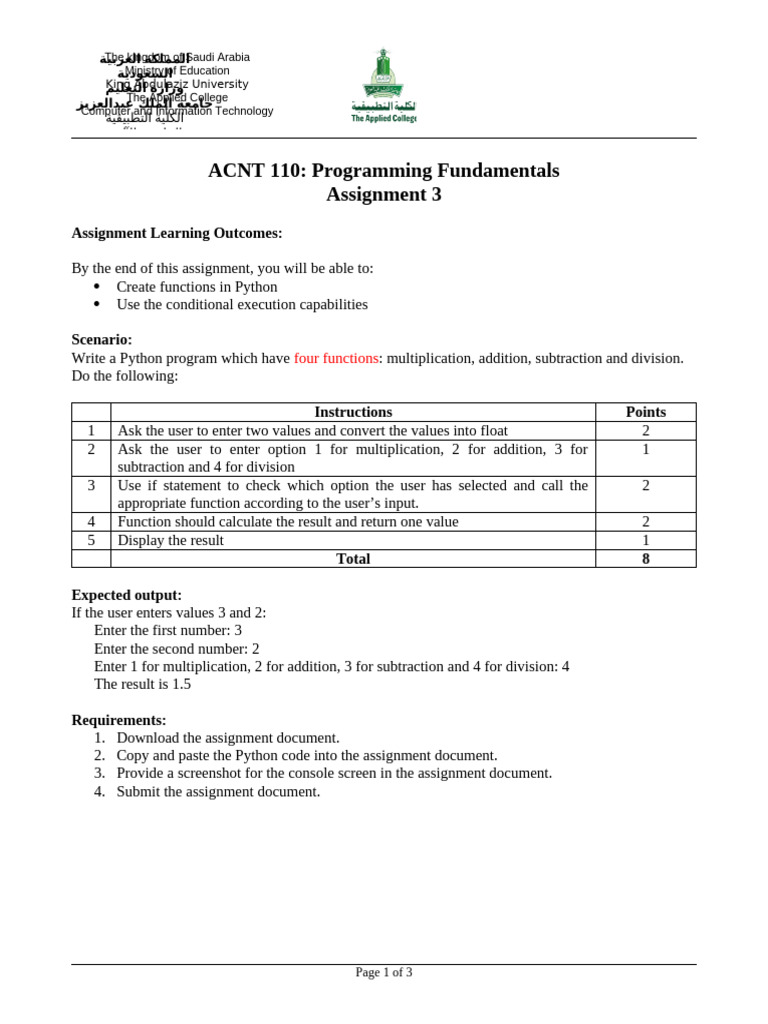 4. Submit the assignment document.