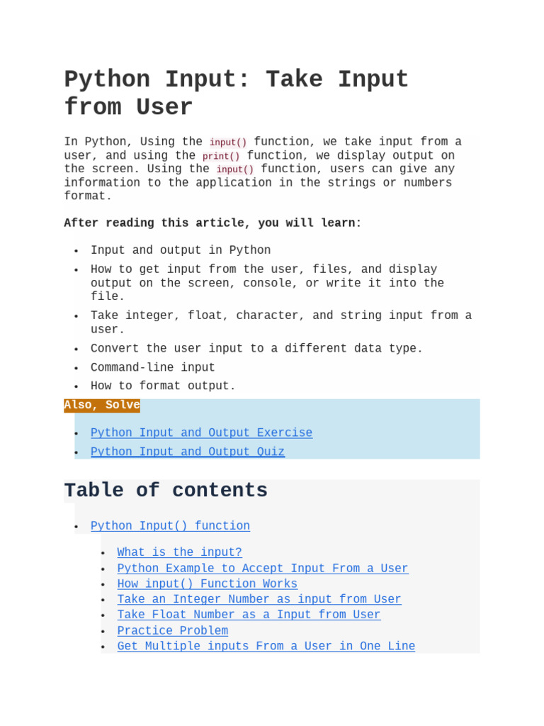the screen. Using the input() function, users can give any