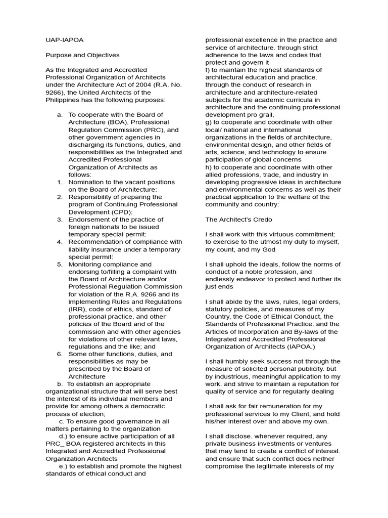 regulations and the like; and Organization of Architects (IAPOA.)