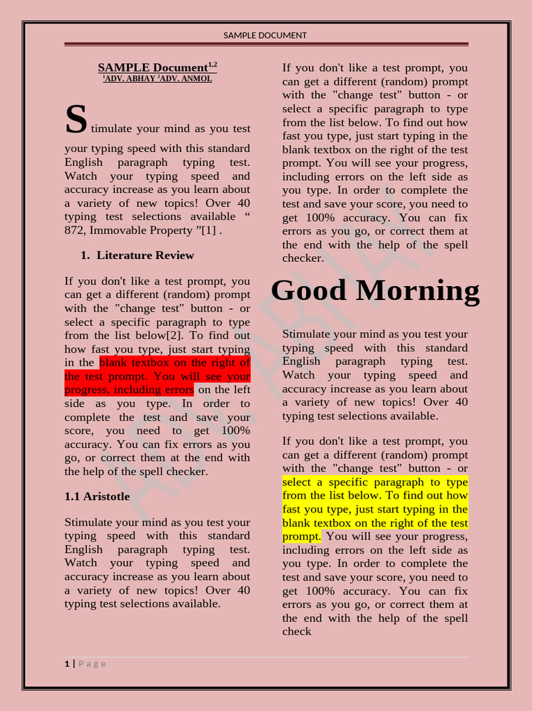 SAMPLE Document1,2 If you don't like a test prompt, you