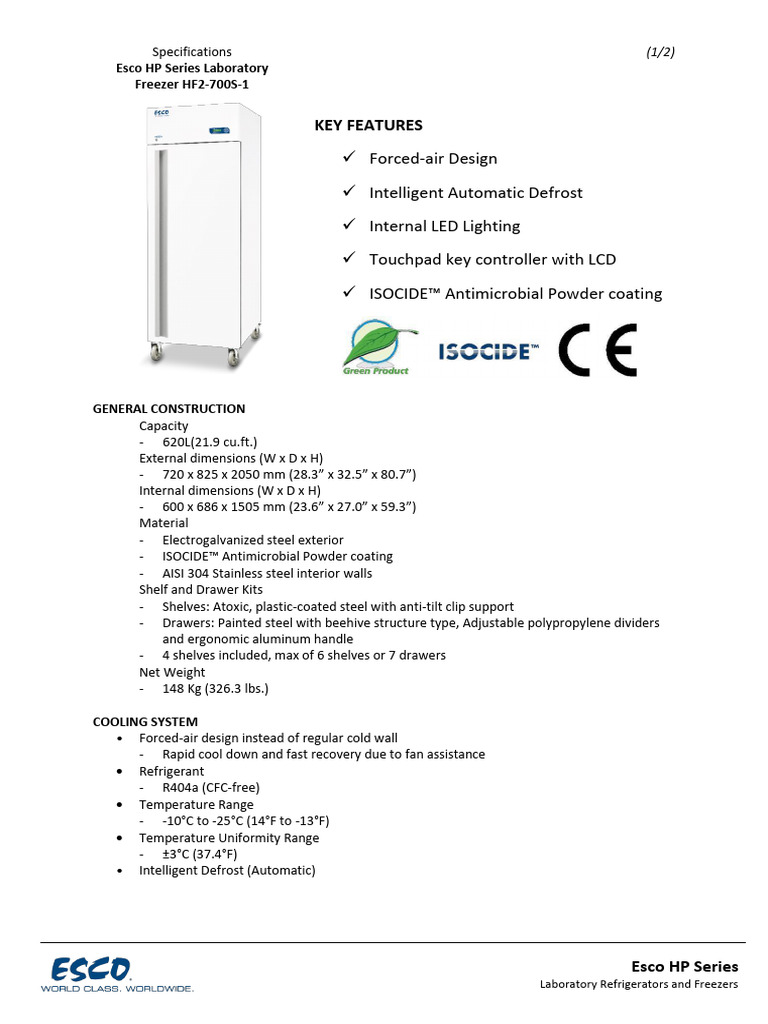 - Alarms on open door, high/low temperature and clogged condenser filter