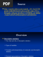 • Typical indicators for descriptive statistics are the central tendency and the variability