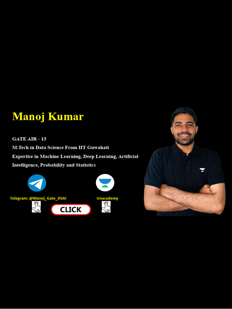 GATE AIR - 13 [Link] in Data Science From IIT Guwahati Expertise in Machine Learning, Deep Learning, Artificial Intelligence, Probability and Statistics