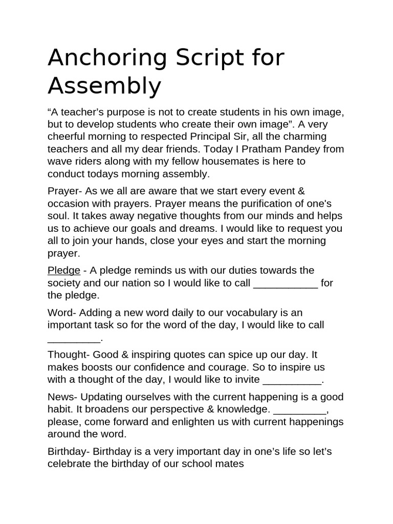 conduct todays morning assembly.