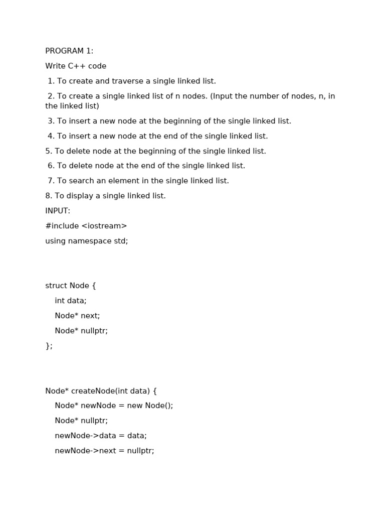 1. To create and traverse a single linked list.