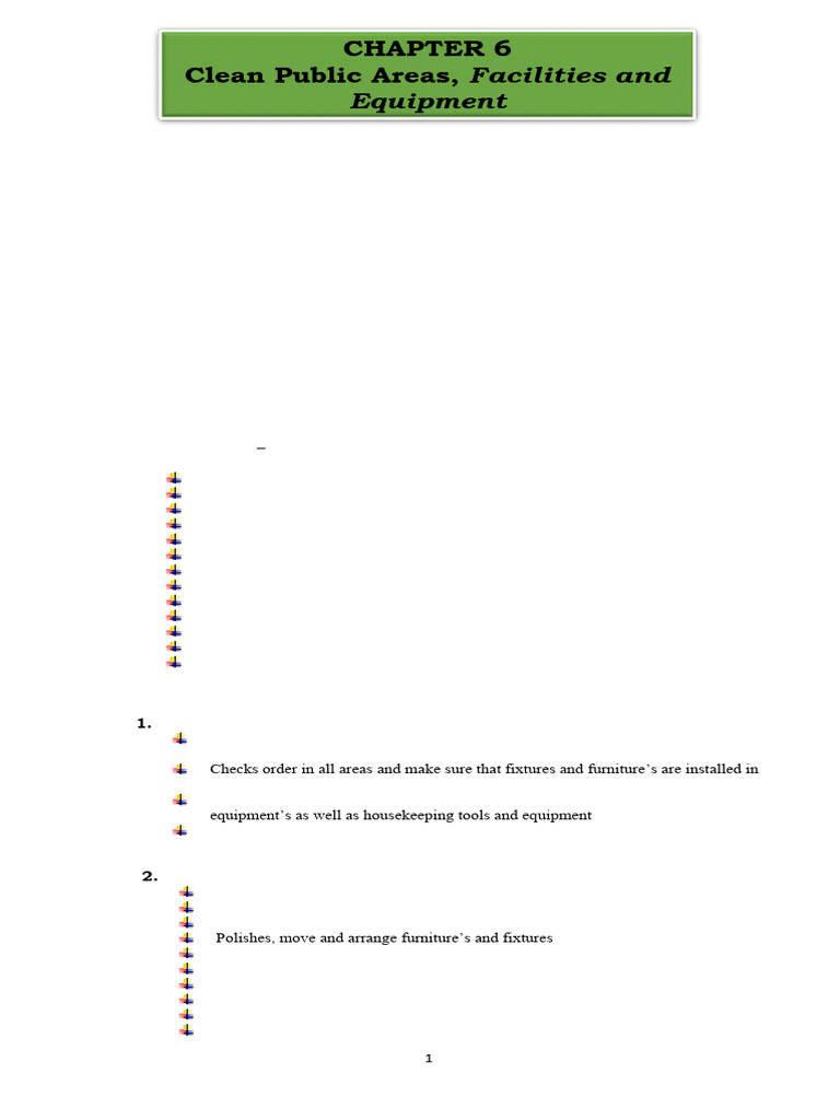 cleaning and maintenance and ensures that all areas are free of safety hazard.
