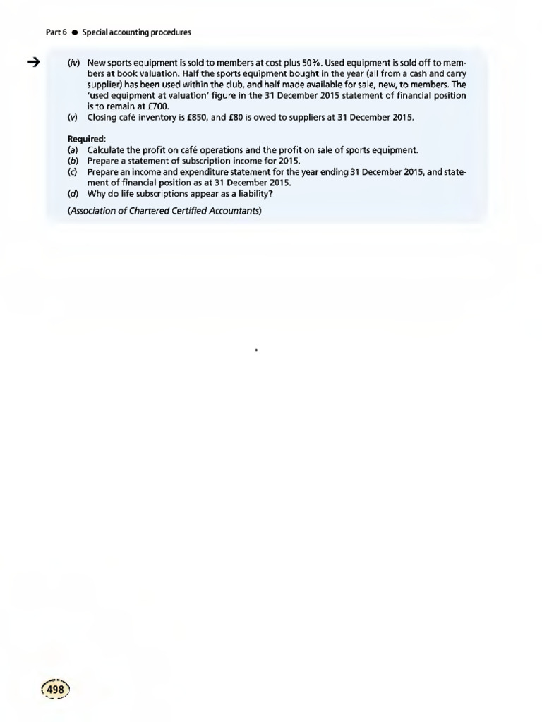 bers at book valuation. Half the sports equipment bought in the year (all from a cash and carry