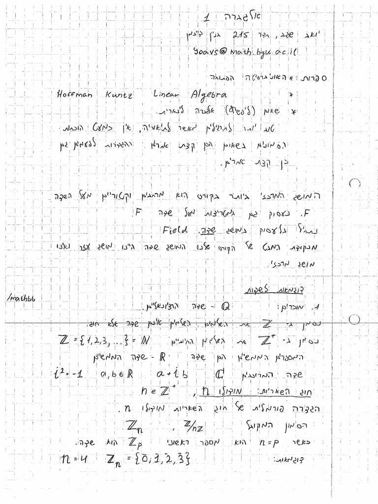 Lecture notes for the Algebra 1 course