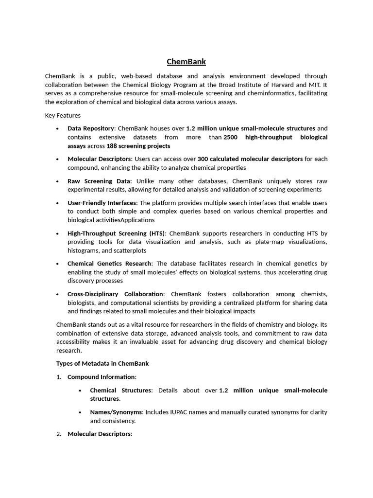 ChemBank stands out as a vital resource for researchers in the fields of chemistry and biology. Its