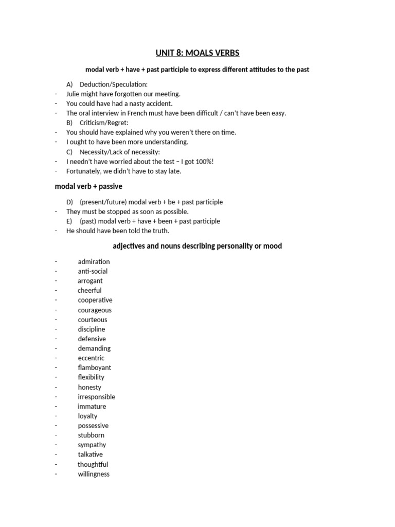 UNIT 8: MOALS VERBS