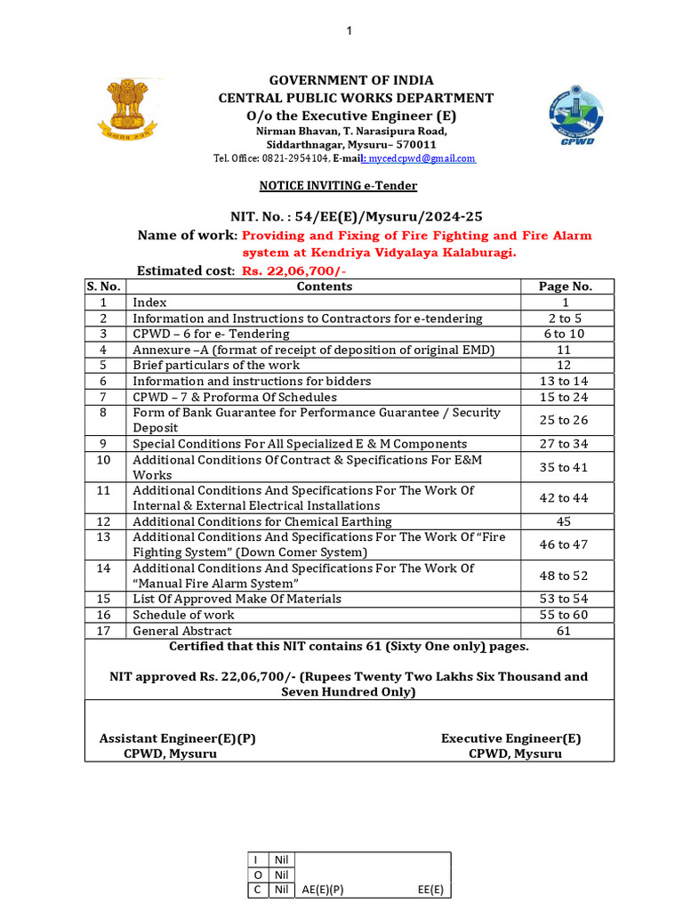 Name of Work :- Providing and Fixing of Fire Fighting and Fire Alarm system at Kendriya Vidyalaya Kalaburagi.