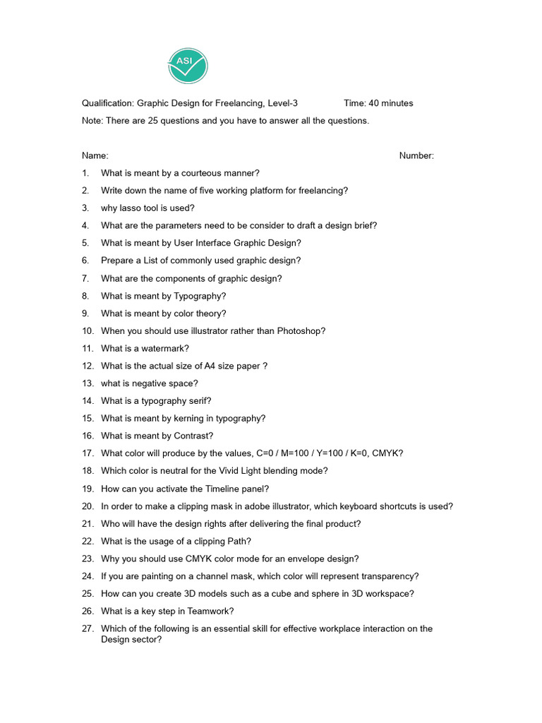 Qualification: Graphic Design for Freelancing, Level-3 Time: 40 minutes