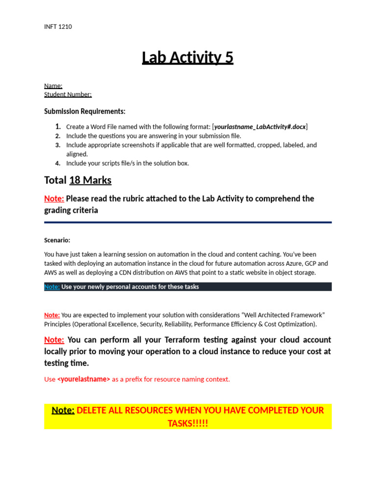 Note: Please read the rubric attached to the Lab Activity to comprehend the