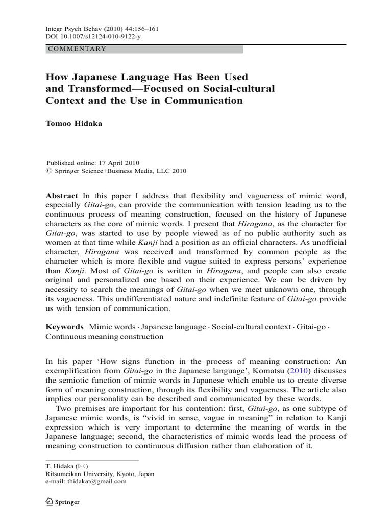 Keywords Mimic words . Japanese language . Social-cultural context . Gitai-go .