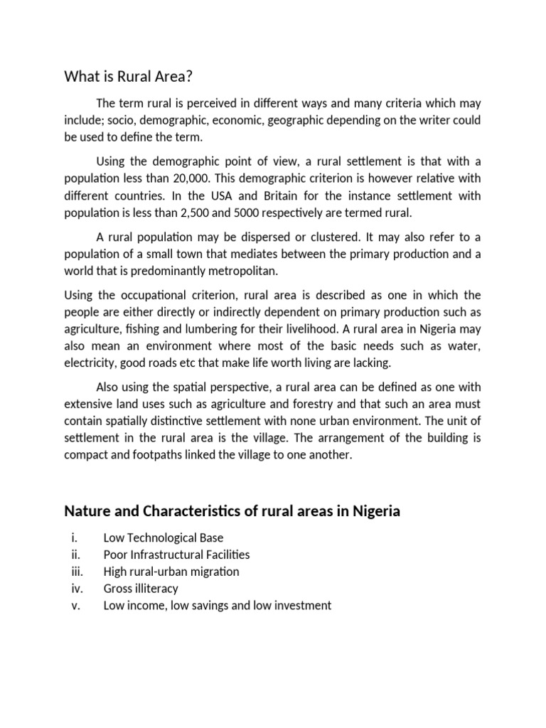Nature and Characteristics of rural areas in Nigeria