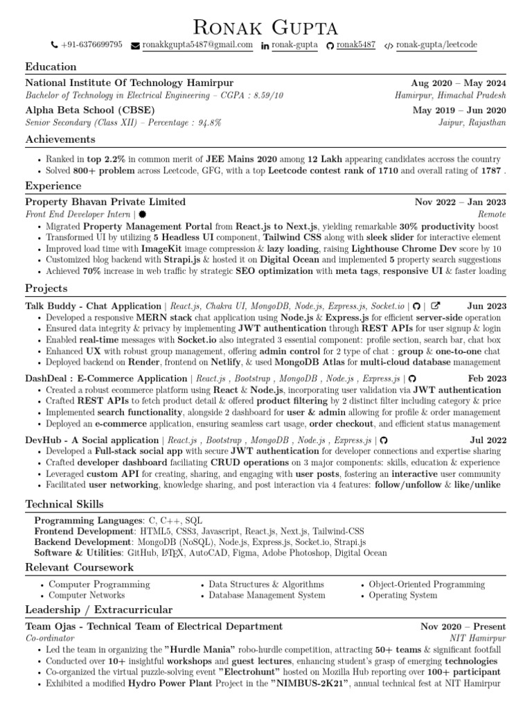 • Solved 800+ problem across Leetcode, GFG, with a top Leetcode contest rank of 1710 and overall rating of 1787 .