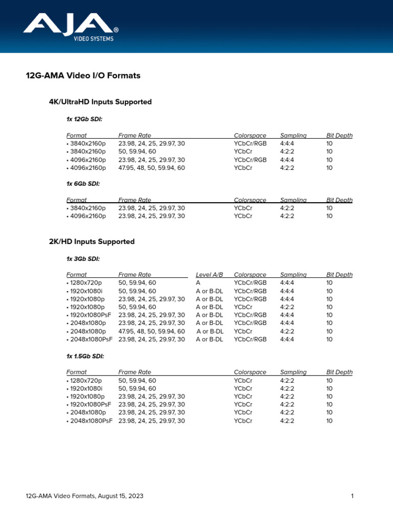 • 4096x2160p 47.95, 48, 50, 59.94, 60 YCbCr [Link] 10