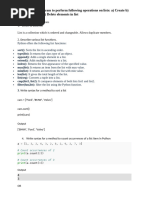 /*Program to perform Operations on Lists.