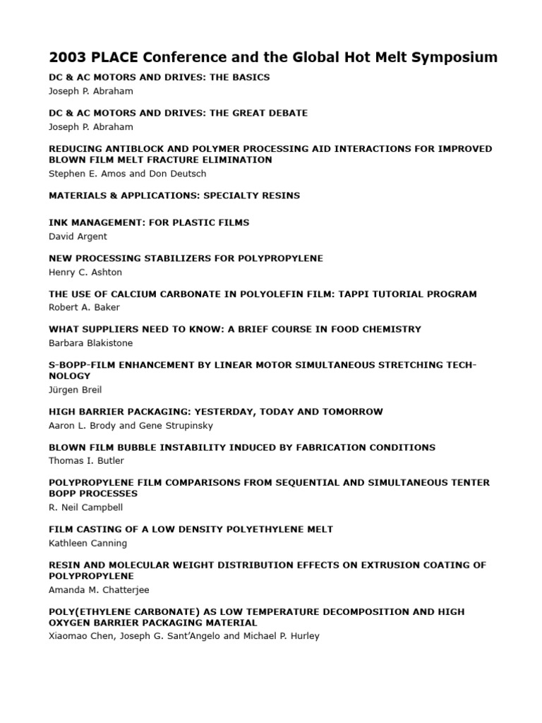 2003 PLACE Conference and the Global Hot Melt Symposium