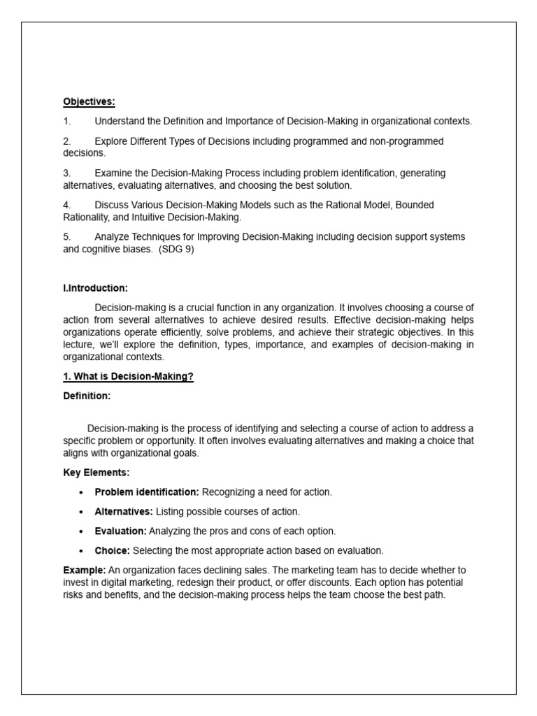 lecture, we’ll explore the definition, types, importance, and examples of decision-making in