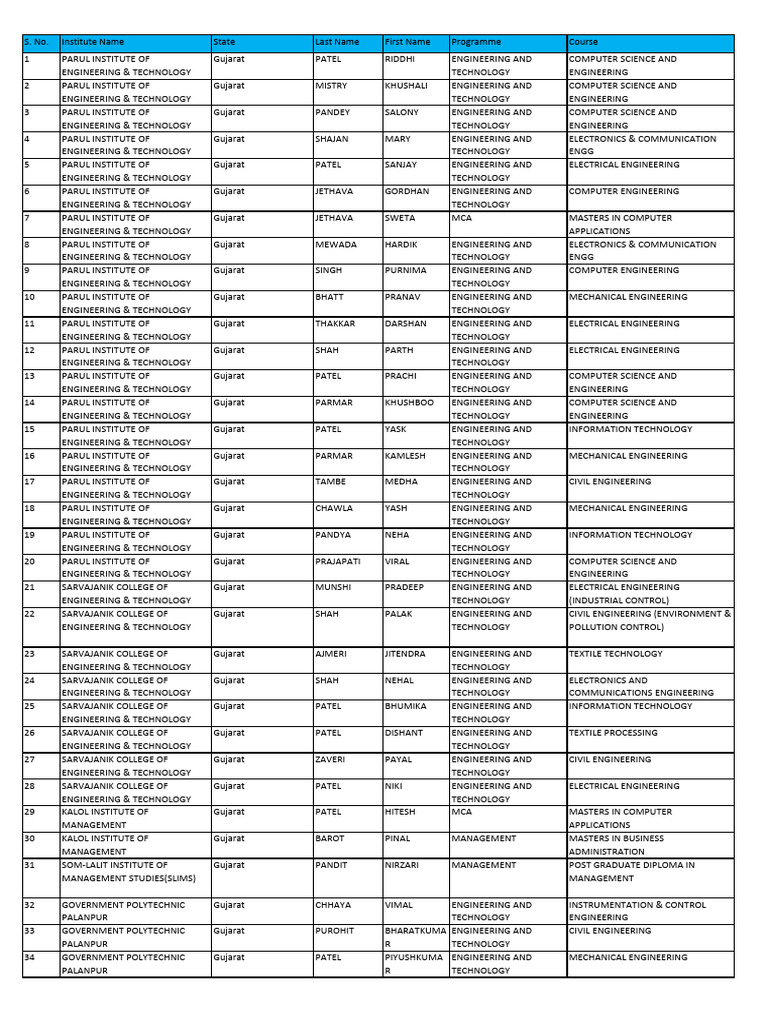 52 SHANKERSINH VAGHELA BAPU Gujarat GUPTA RUCHI ENGINEERING AND INFORMATION TECHNOLOGY