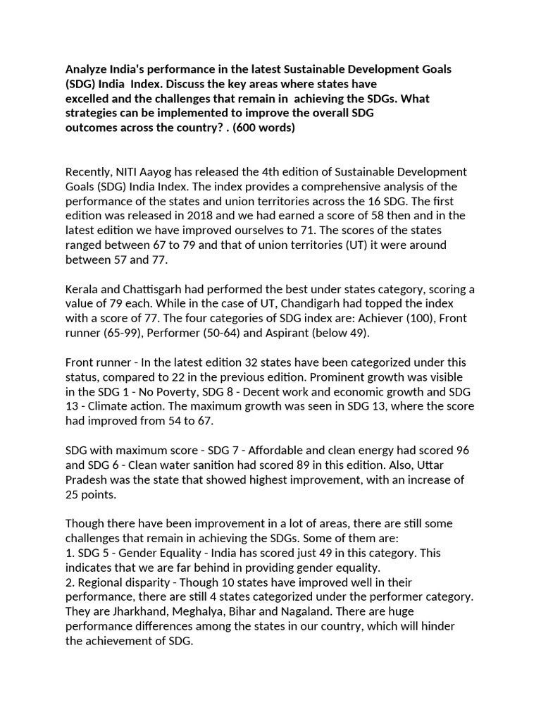 (SDG) India Index. Discuss the key areas where states have
