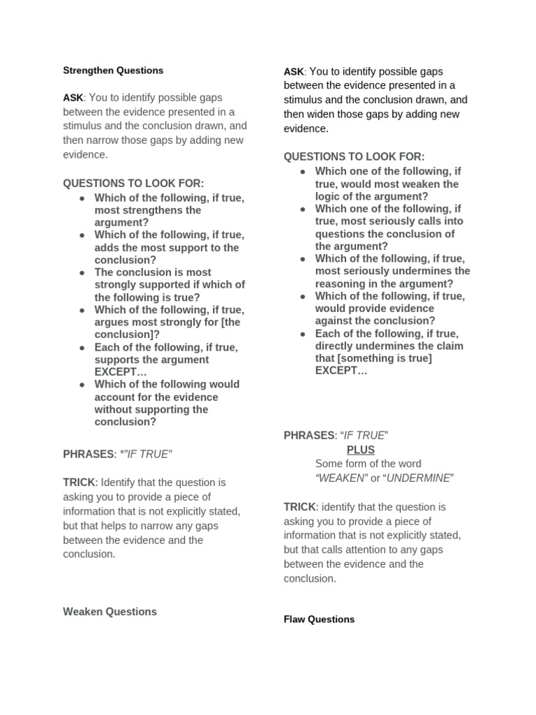 QUESTIONS TO LOOK FOR: true, would most weaken the