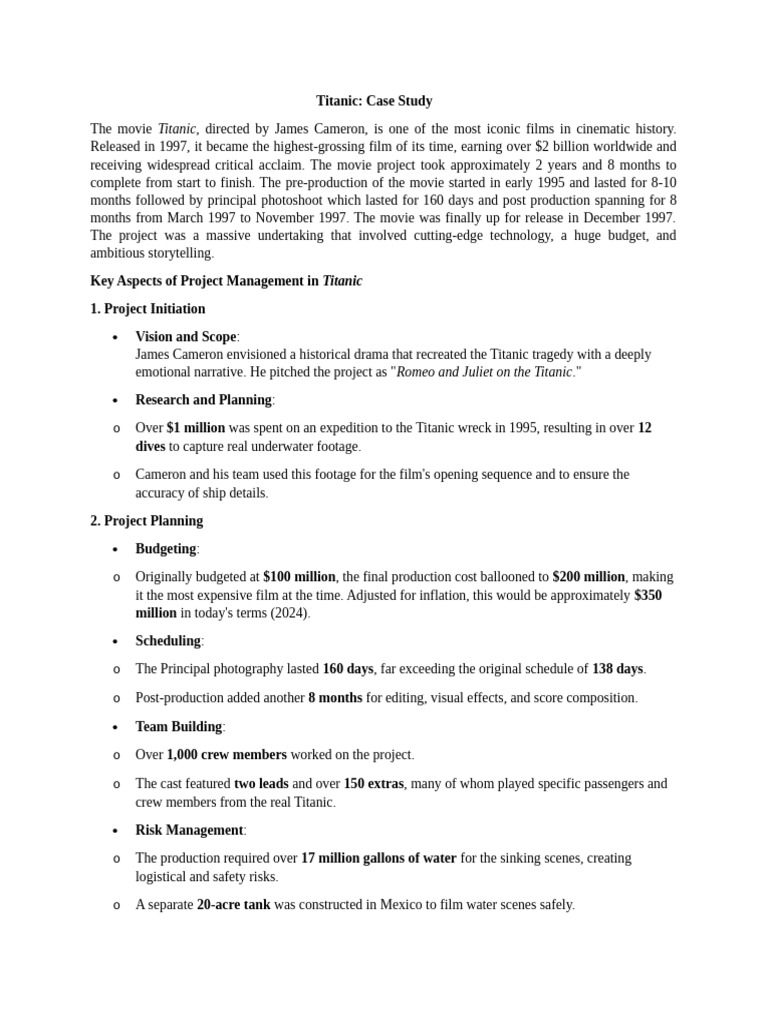 Key Aspects of Project Management in Titanic