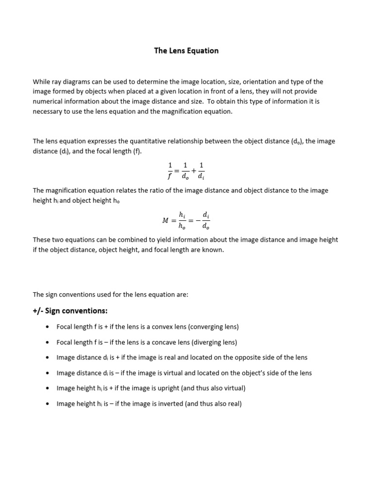 4. To determine the image distance, the lens equation must be used. The following lines represent