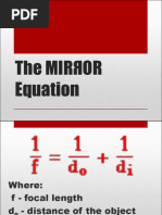 The magnification equation relates the ratio of the image distance and object distance to the image