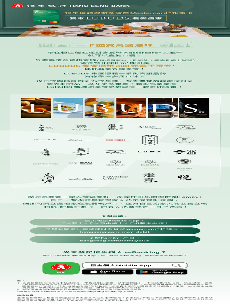 * 優惠受條款及細則約束,詳情請參閱hangseng.com/mcy_debit。