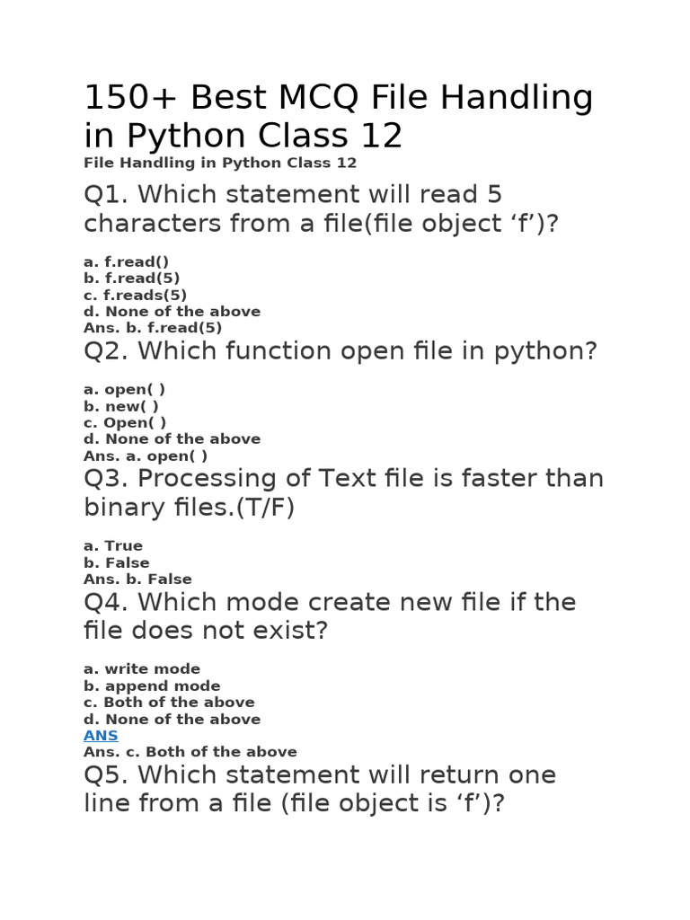 150+ Best MCQ File Handling