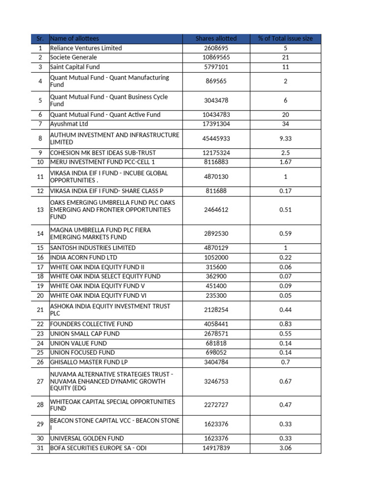 Name of allottees Shares allotted % of Total issue size