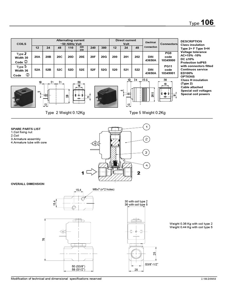 Modification of technical and dimensional specifications reserved 2.106.D/09/03