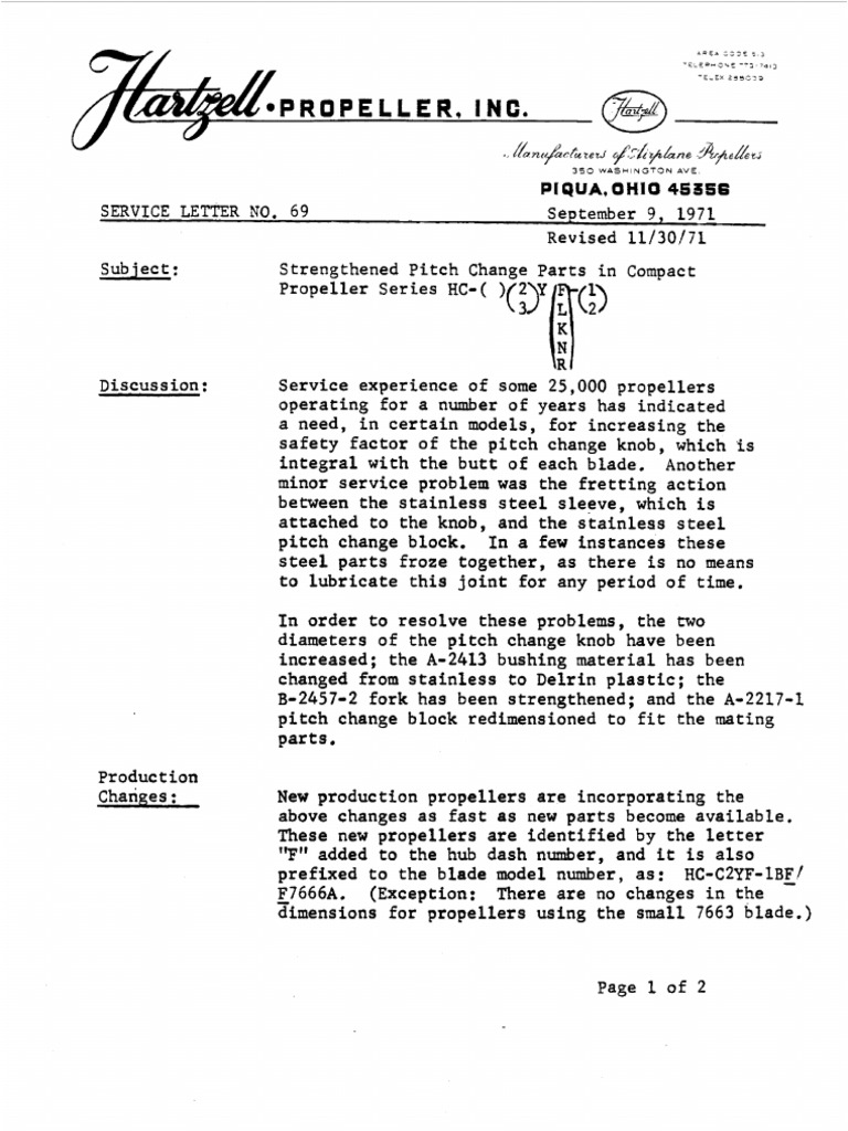 SERVICE LETTER NU. 6 9 September 9 , 1971