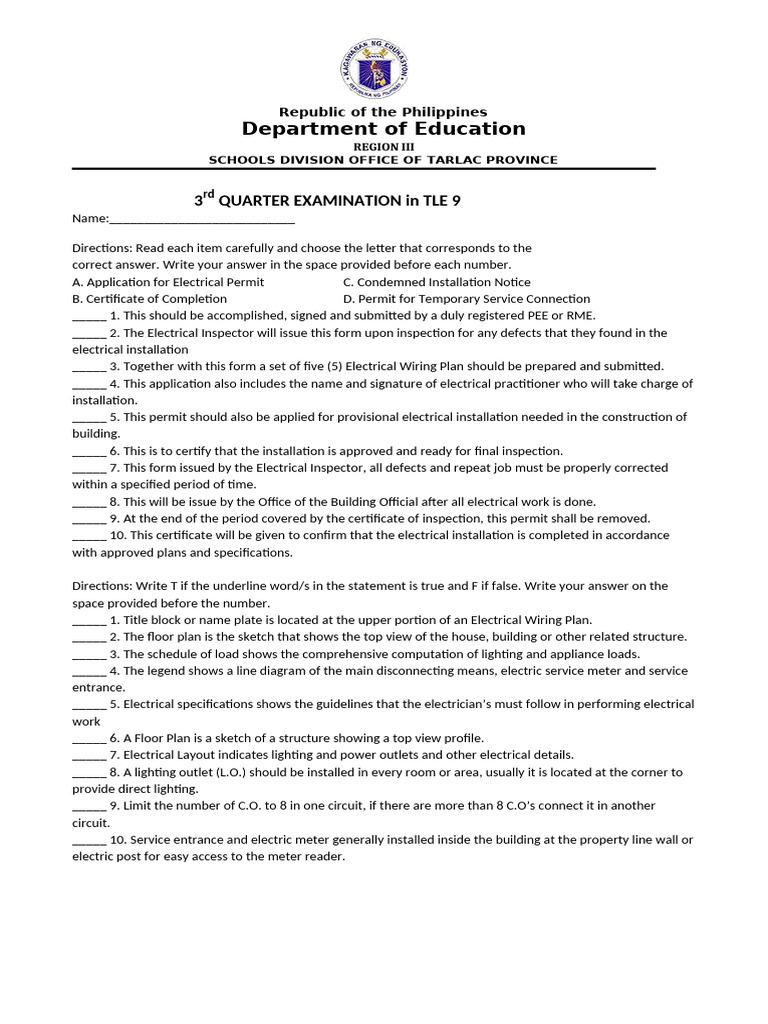3 QUARTER EXAMINATION in TLE 9
