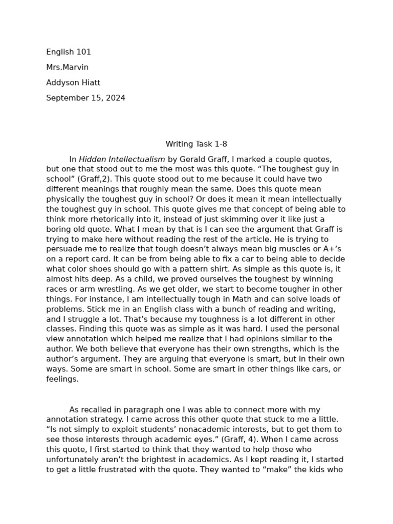 see those interests through academic eyes.” (Graff, 4). When I came across
