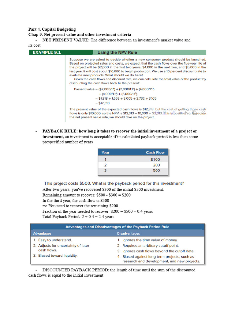 Chap 9. Net present value and other investment criteria