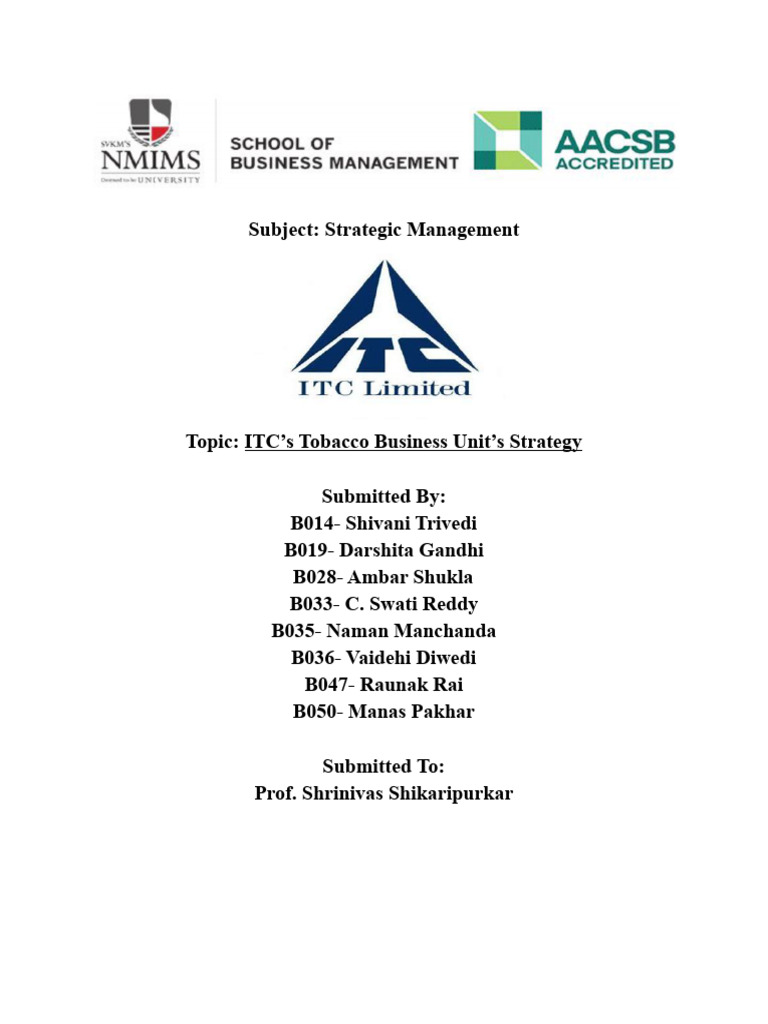 We are highly delighted to work on this report titled “ITC’s Tobacco Business Unit’s Strategy ”.