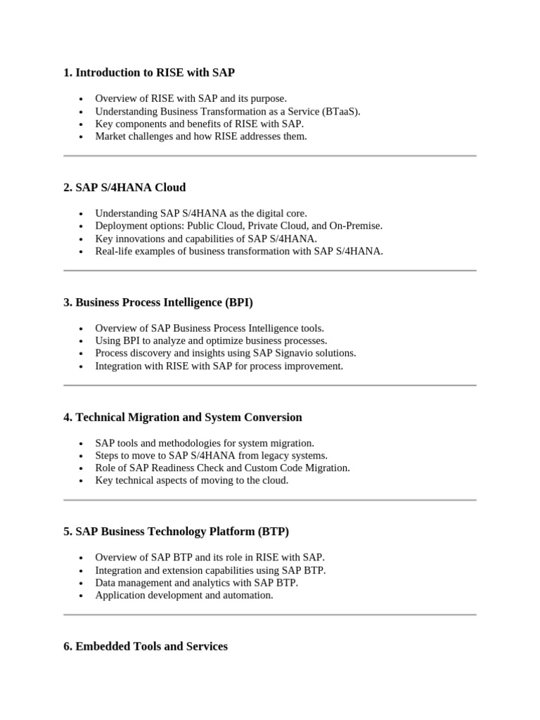 Overview of RISE with SAP and its purpose.